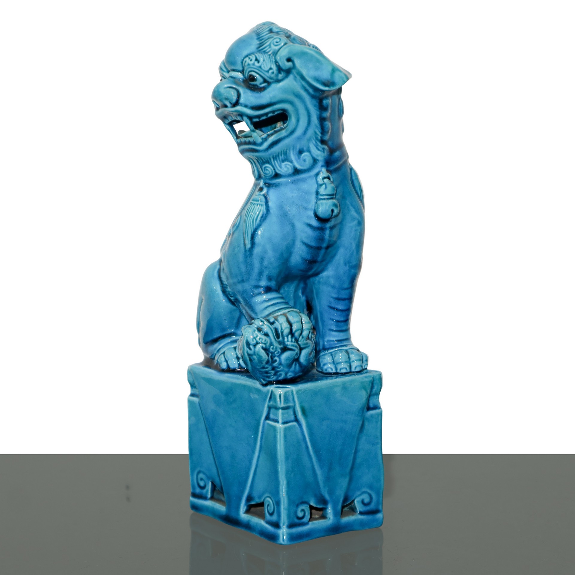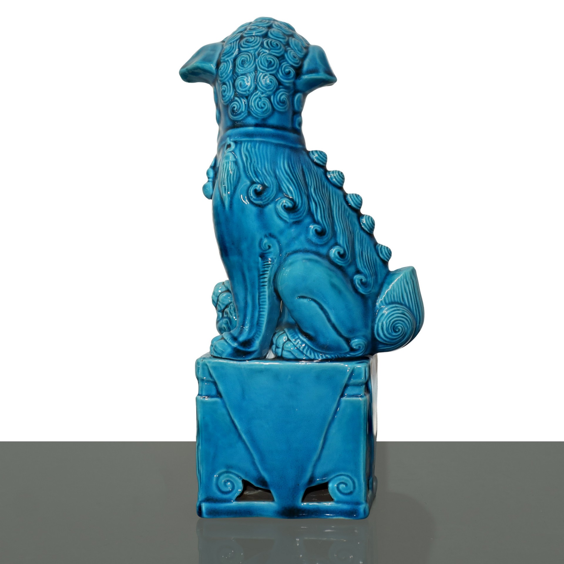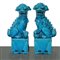 Coppia di fermalibri cani di Fo in maiolica colorata azzurra