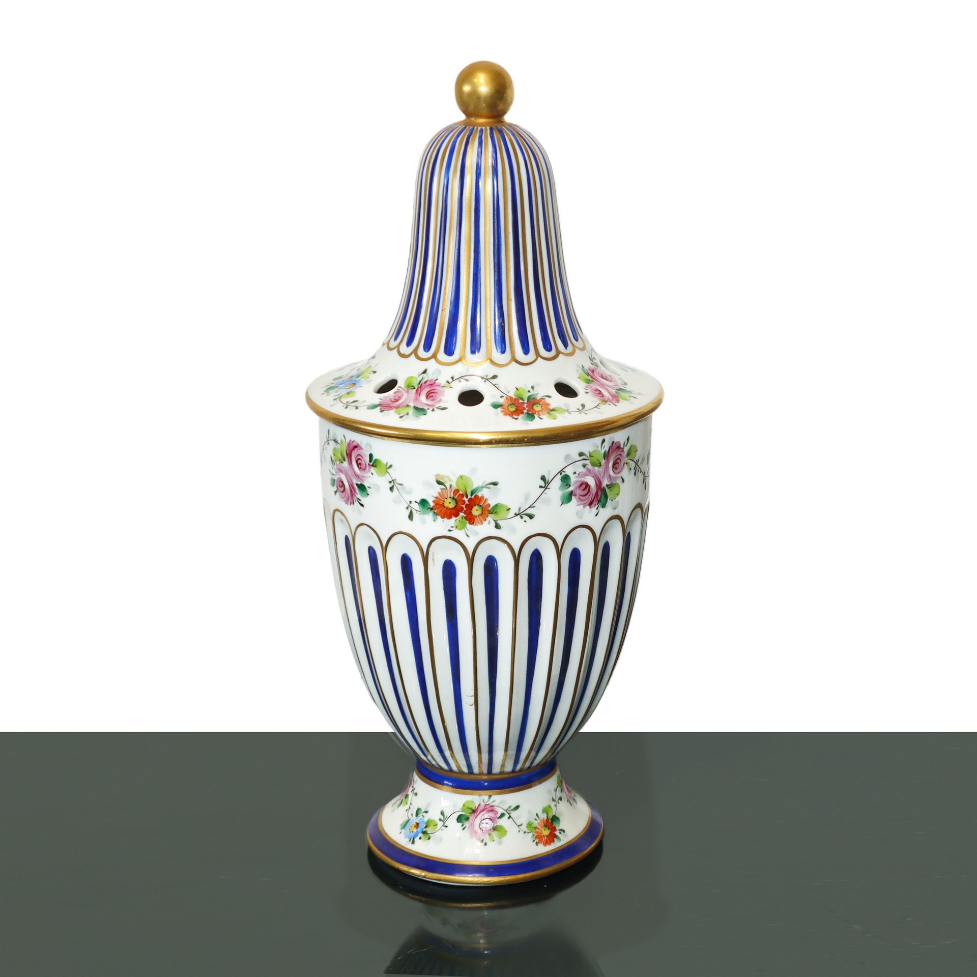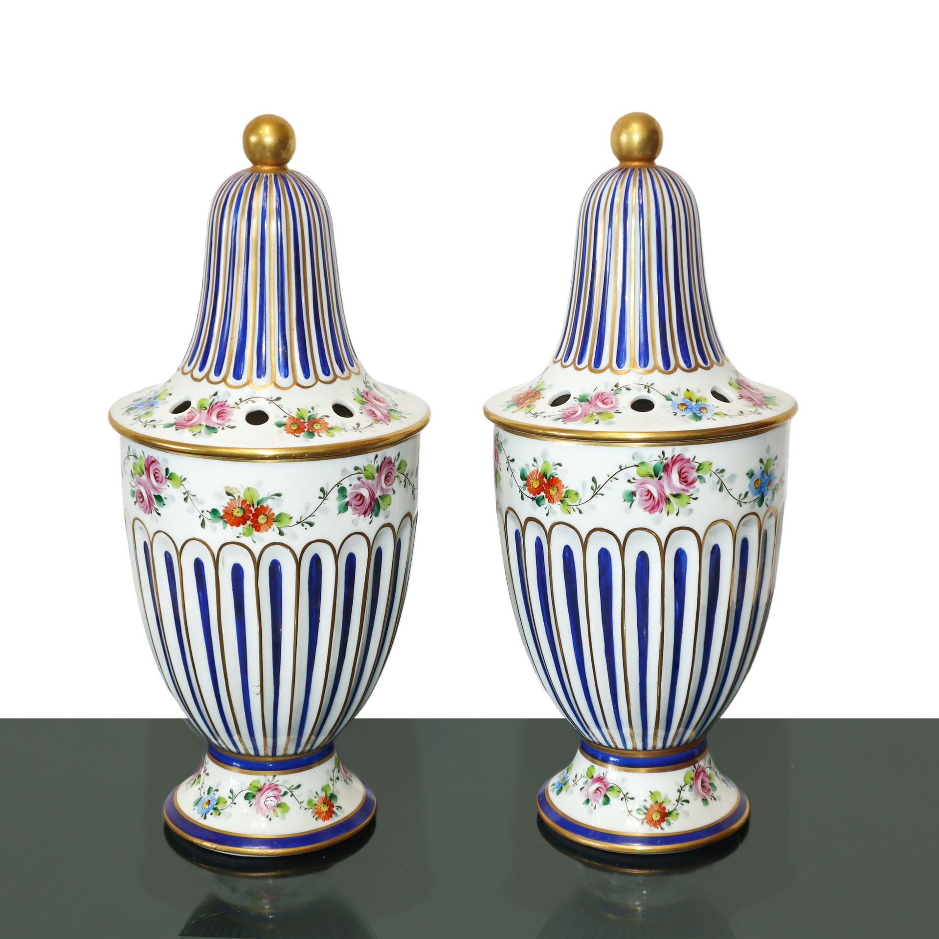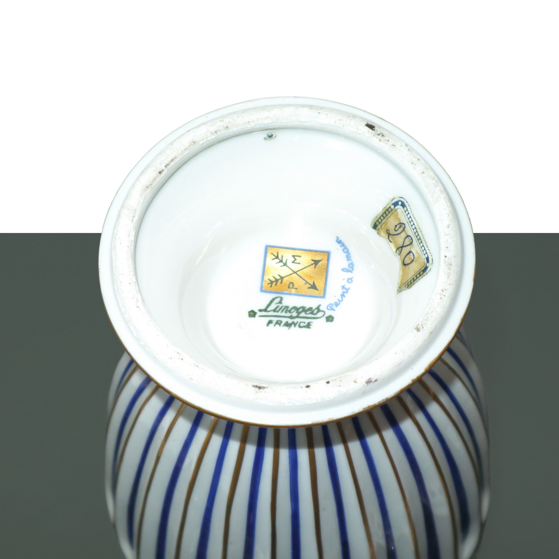 Limoges - Coppia di poutiche con decori floreali e inserti blu e dorati, 20° secolo h cm 30X13 Marchio della manifattura alla base