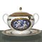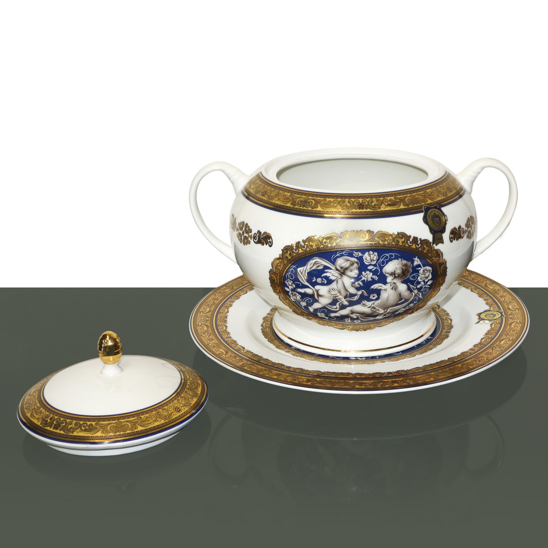 Limoges - Zuppiera con sottopiatto in porcellana con tesa in oro e al centro amorini