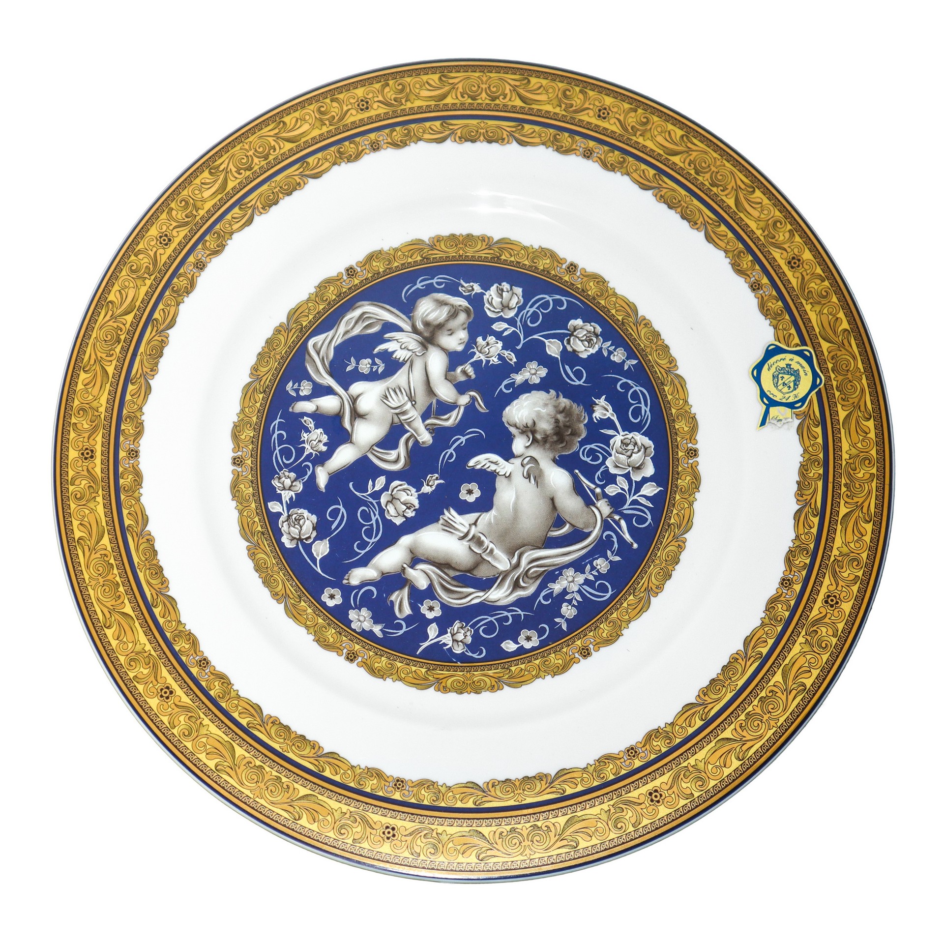 Limoges - Zuppiera con sottopiatto in porcellana con tesa in oro e al centro amorini diametro cm 32