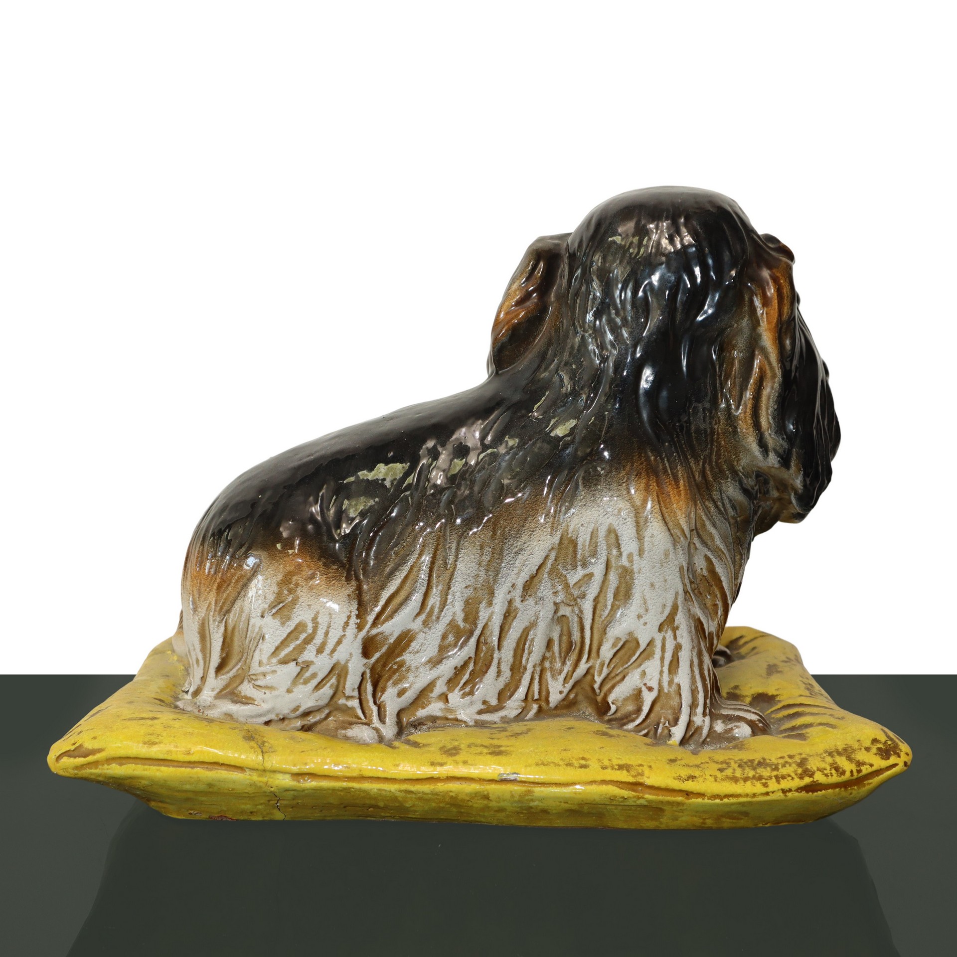 Pechinese in maiolica smaltata e dipinta policroma, 20° secolo h cm 33X44X26 Presenti incollature nella parte inferiore.