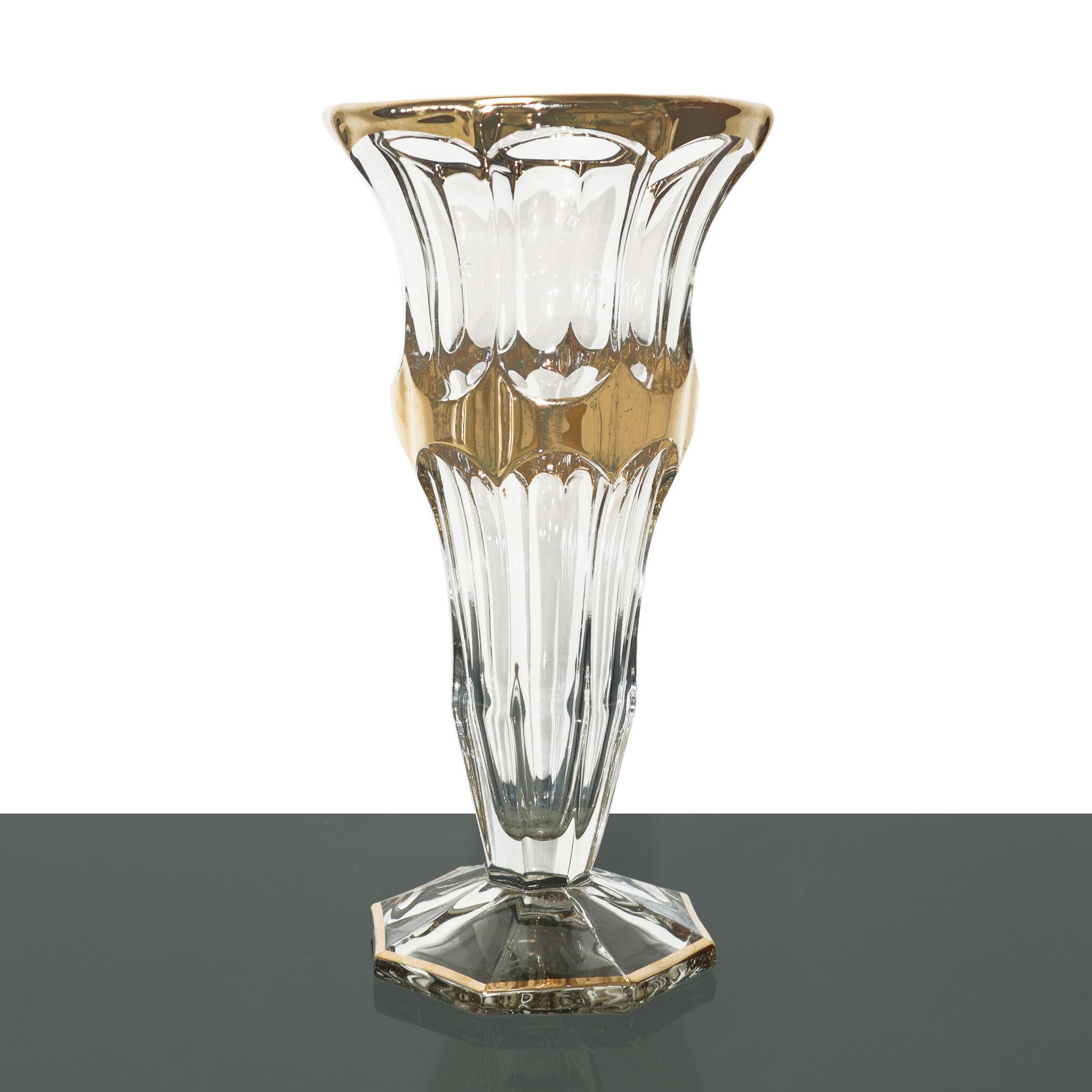 Vaso vintage in vetro tagliato e dorato a forma di calice h cm 26