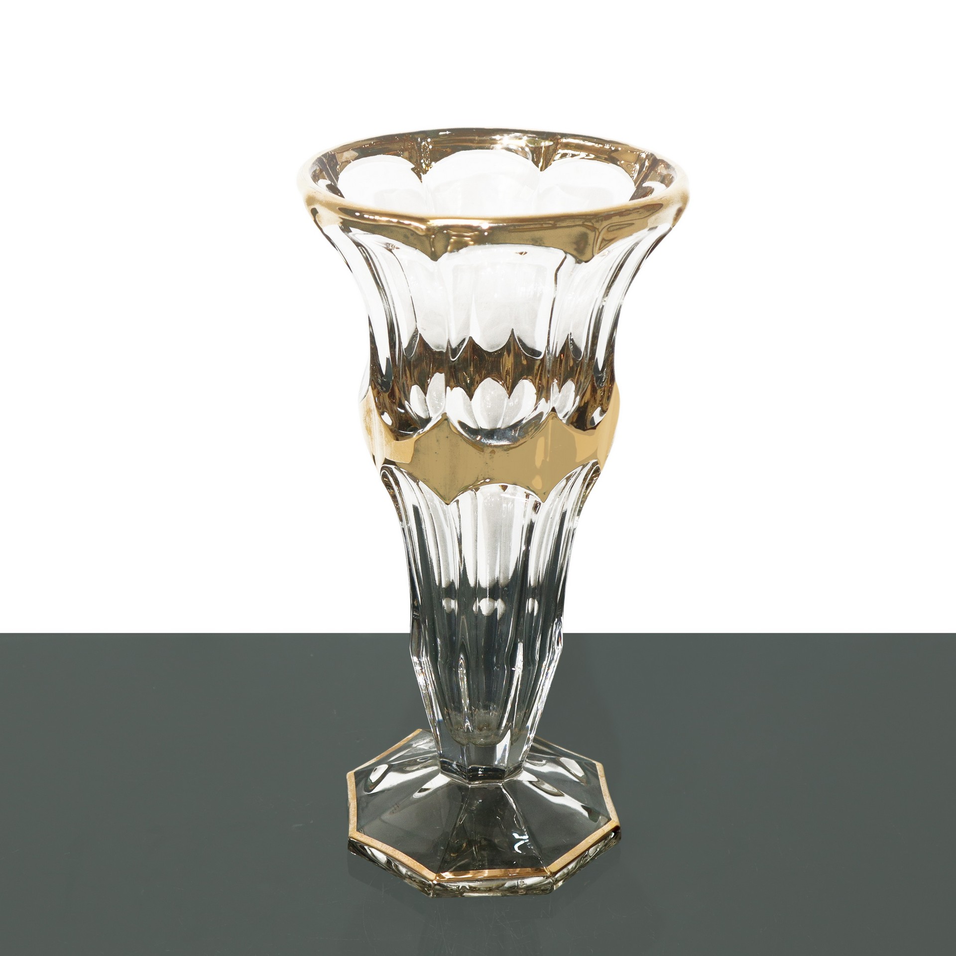 Vaso vintage in vetro tagliato e dorato a forma di calice