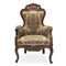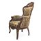 Poltrona Luigi Filippo imbottita con spalliera in legno intagliato, piedi a cabriole h cm 109X56X65