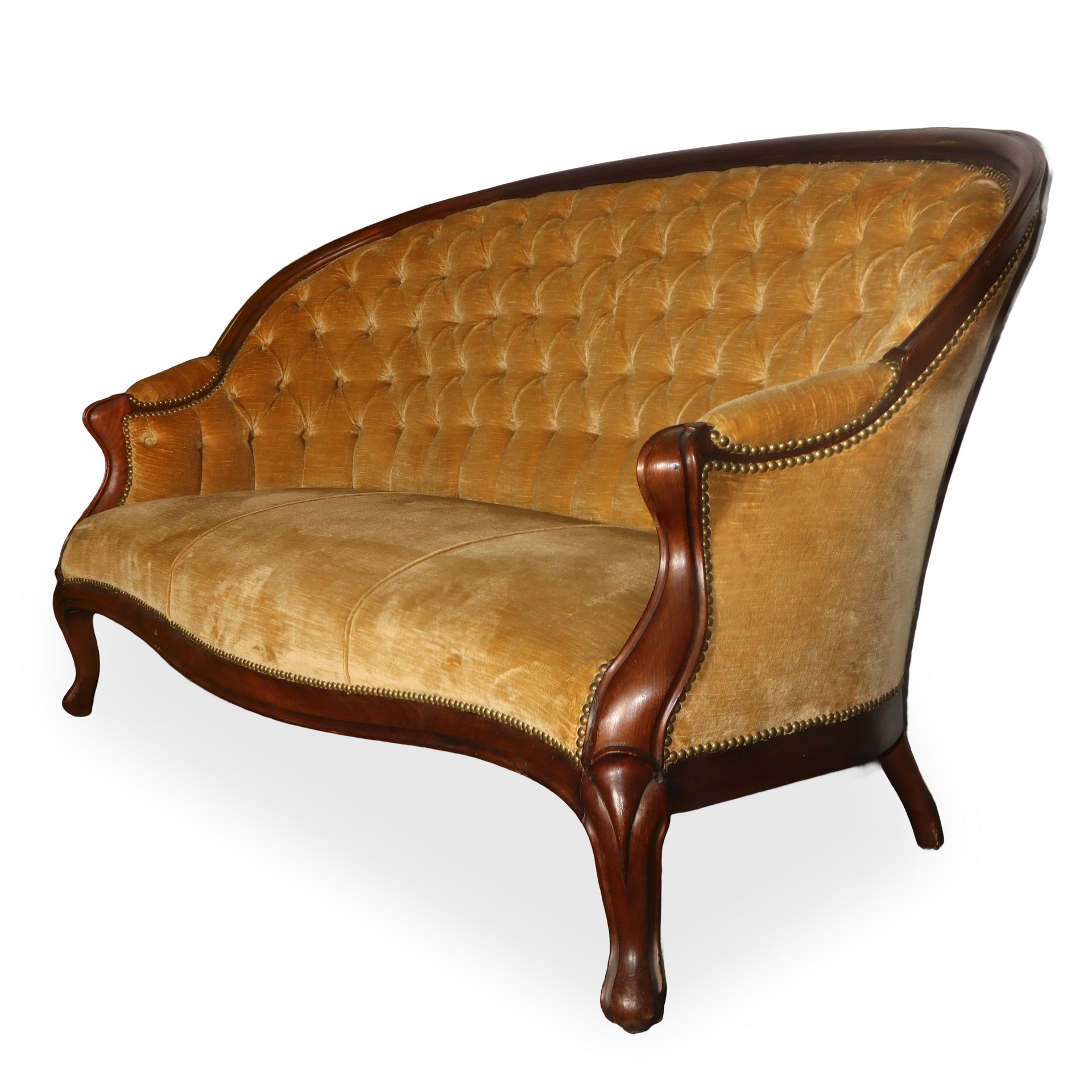 Divano Luigi Filippo in legno di noce spalliera tapezzata a capitonnè, 19° secolo