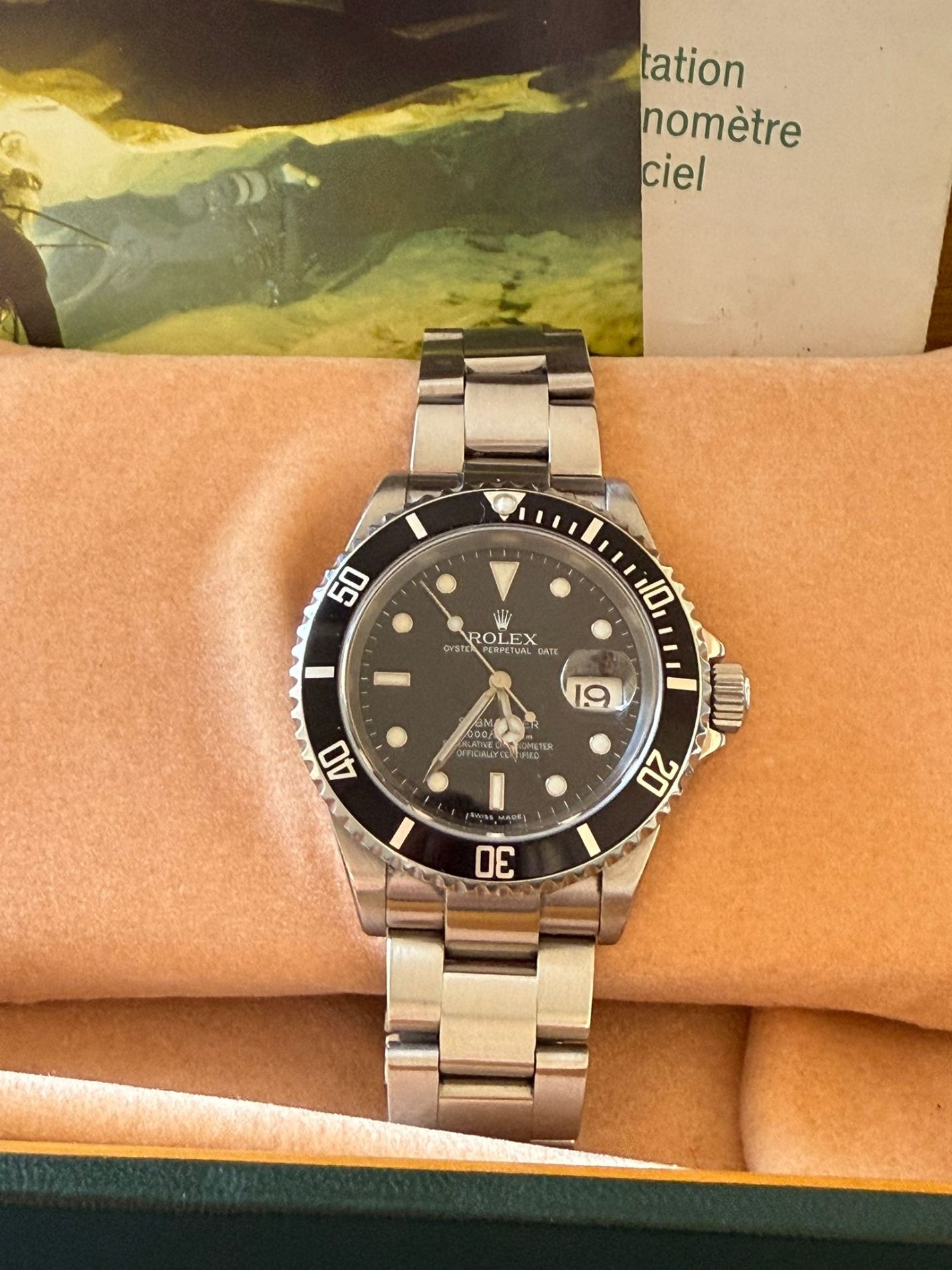 Marca Rolex Modello (Orologio) Submariner Date Numero di referenza 16610 Carica Automatico Materiale della cassa Acciaio Materiale cinturino Acciaio Anno di produzione 2006 Condizione Ottimo (di seconda mano, segni di usura assenti o appena visibili) Corredo Con documenti originali, senza scatola originale Carica Automatico Cassa no fori Materiale della cassa Acciaio Diametro 40 mm Impermeabile 30 ATM Materiale lunetta Acciaio Vetro Vetro zaffiro Quadrante Nero Numeri sul quadrante Senza numeri Cinturino Materiale cinturino Acciaio Colore cinturino Acciaio Chiusura Déployante Materiale chiusura Acciaio - COMMISSIONE D’ASTA 25%