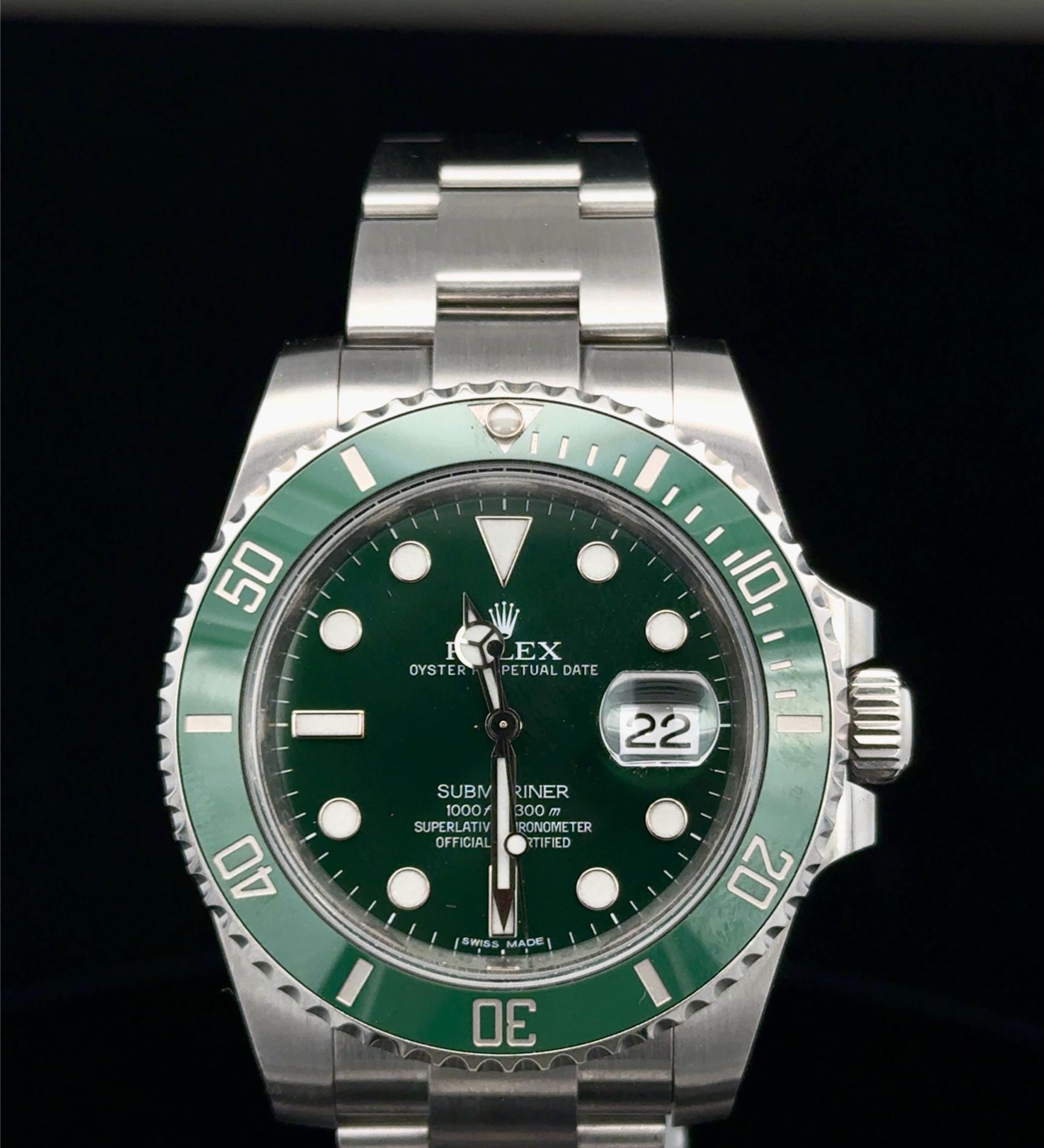 Marca Rolex Modello (Orologio) Submariner Date Numero di referenza 116610LV Carica Automatico Materiale della cassa Acciaio Materiale cinturino Acciaio Anno di produzione 2011 Condizione Ottimo (di seconda mano, segni di usura assenti o appena visibili) Corredo documenti originali Rolex, no box la scatola utilizzata solo per fotografie non è in vendita Carica Automatico Cassa Materiale della cassa Acciaio Diametro 40 mm Impermeabile 30 ATM Materiale lunetta Ceramica Vetro Vetro zaffiro Quadrante Nero Numeri sul quadrante Senza numeri Cinturino Materiale cinturino Acciaio Colore cinturino Acciaio Chiusura Déployante Materiale chiusura Acciaio Funzioni Data Altro Secondi centrali, Corona a vite