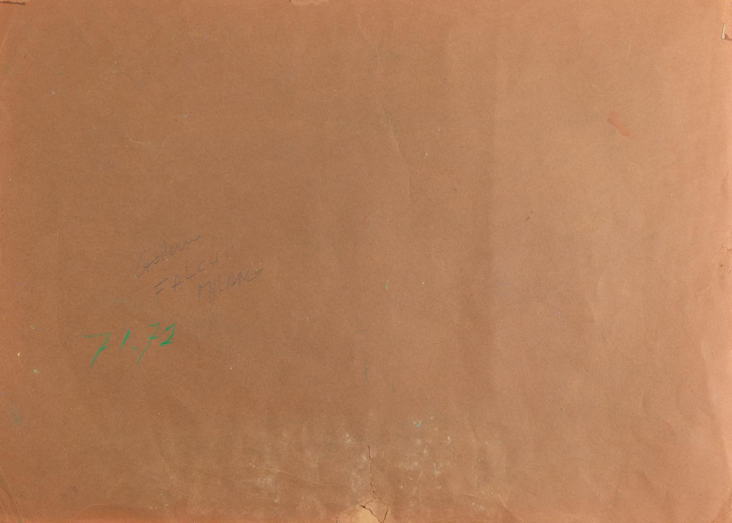 Tecnica mista su carta, acquerello e gessetti colorati, firmato e datato in basso a sinistra, reca al retro iscrizione "Galleria Falchi Milano" e data 1971-72 (difetti). - Provenienza: Collezione privata - Cesena; Galleria Falchi Milano.