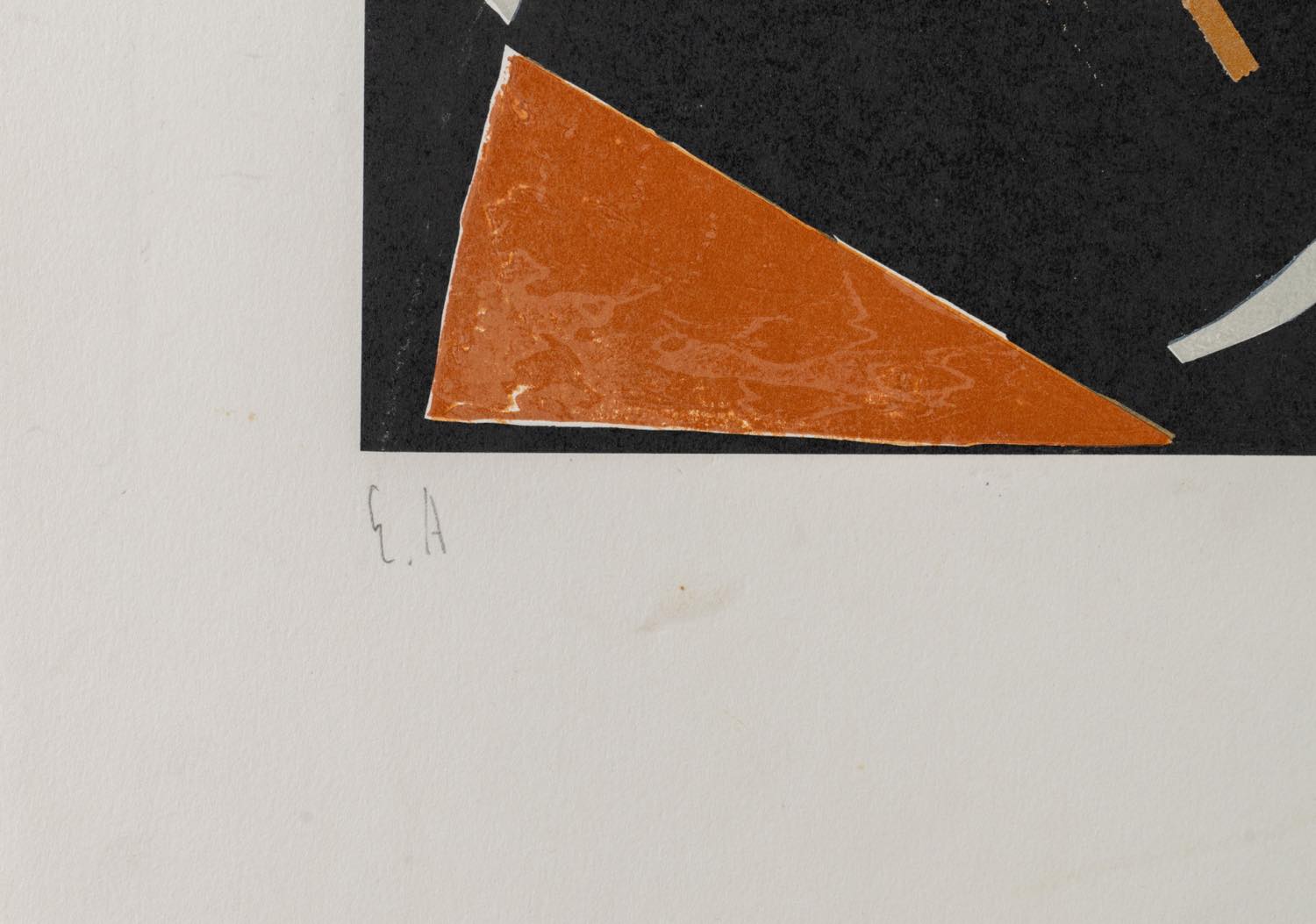 Litografia a colori su carta, firmata in basso a destra, reca esemplare "E.A." in basso a sinistra, lastra H cm 68x44 - foglio H cm 94,5x65