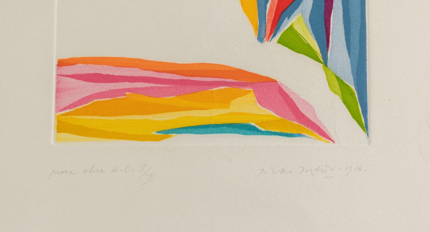 Incisione a colori su carta, firmata e datata a matita in basso a destra, reca esemplare prova colore H.C. I/II e timbro a secco non leggibile, lastra H cm 31,5x20,5 - foglio H cm 70x49