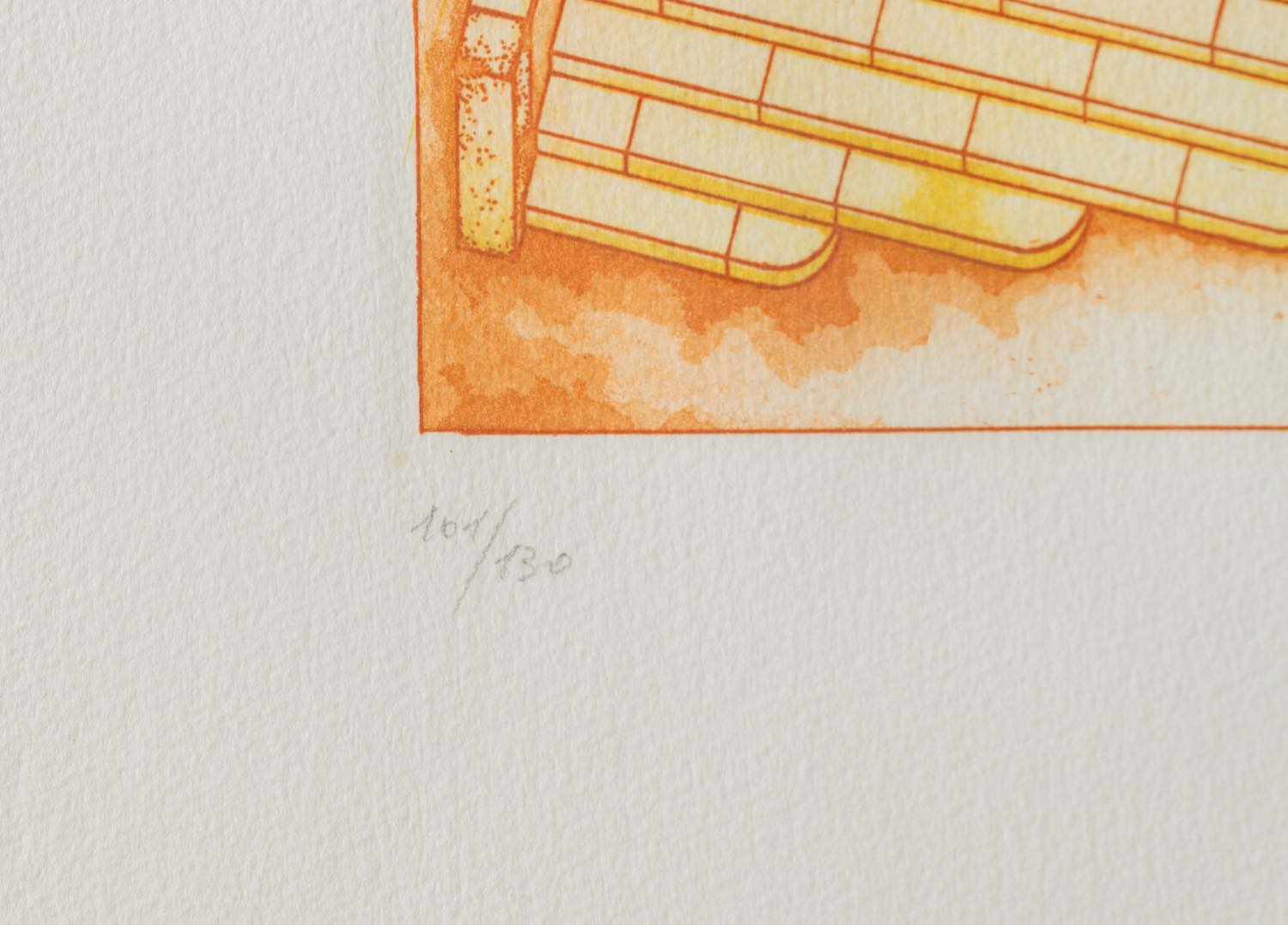 Litografia a colori su carta, firmata a matita in basso a destra, reca numero di tiratura 101/130 in basso a sinistra, lastra H cm 54x37.5 - con cornice H cm 82.5x63.5