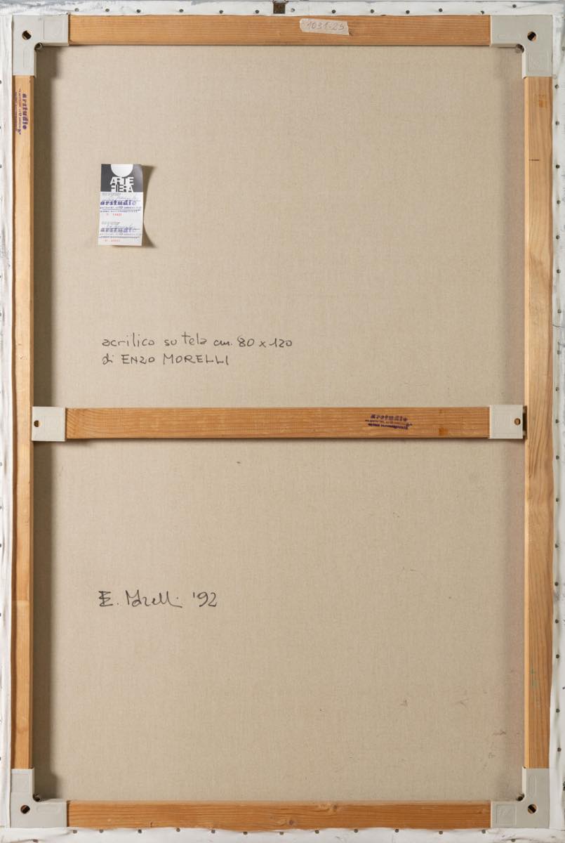 Acrilico su tela, reca al retro firma, data, etichetta di ArteFiera '93 e timbro di Arstudio - Portomaggiore, H cm 80x120