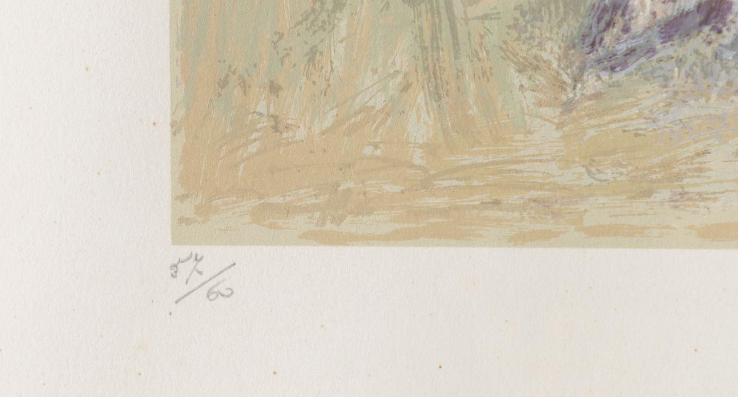 Litografia a colori su carta, firmata a matita in basso a destra, reca numero di tiratura in basso a sinistra 57/60, lastra H cm 25x42 - con cornice H cm 58x75.5