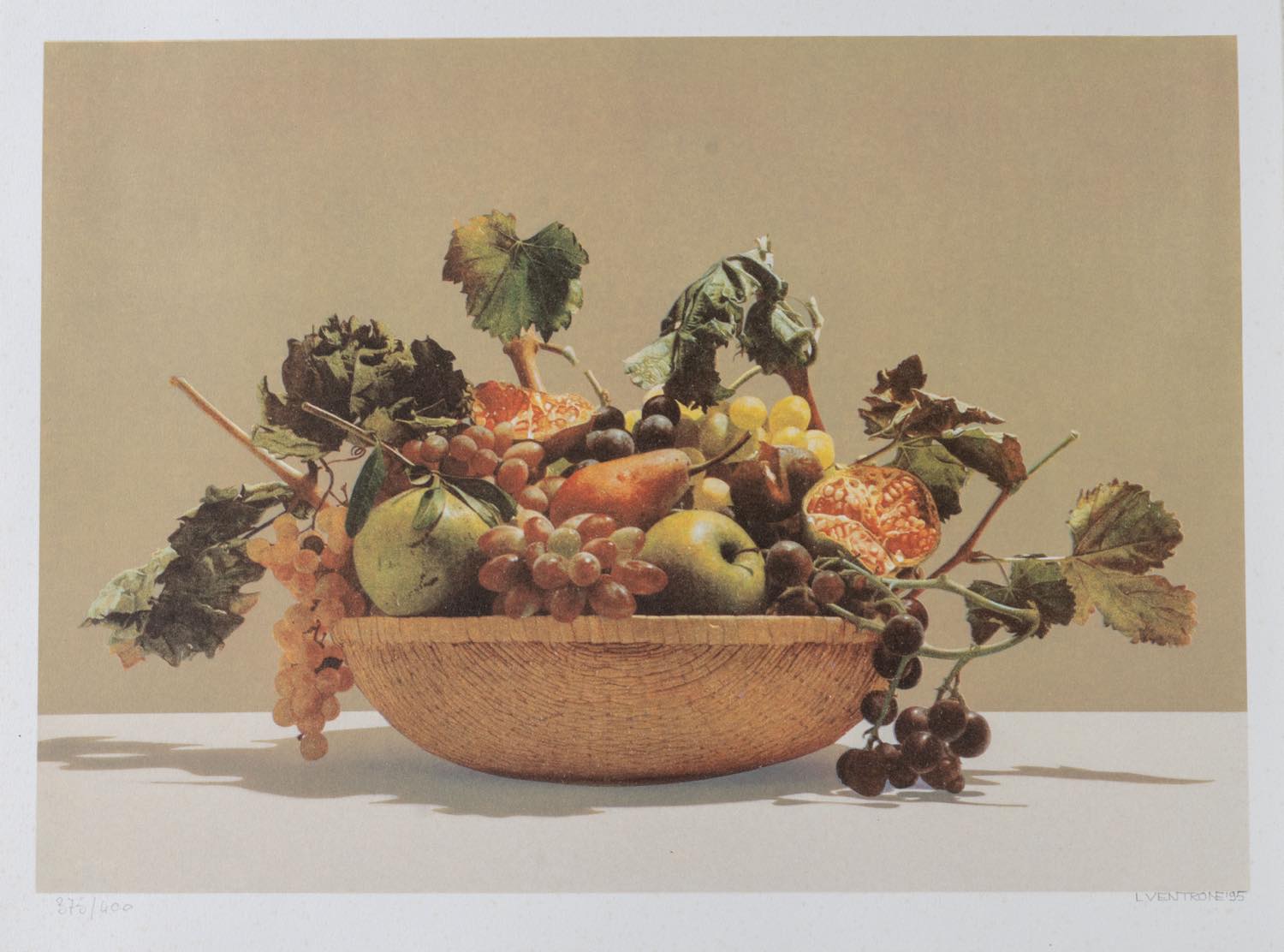 Luciano Ventrone (Roma 1942 – Collelongo 2021), "Cesta di frutta", 1995.