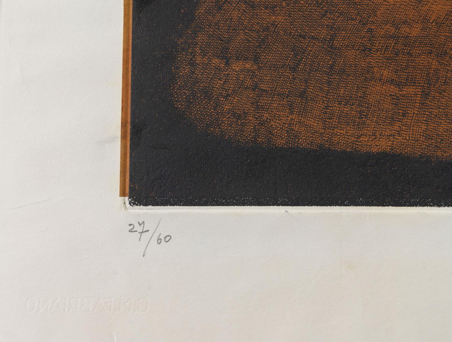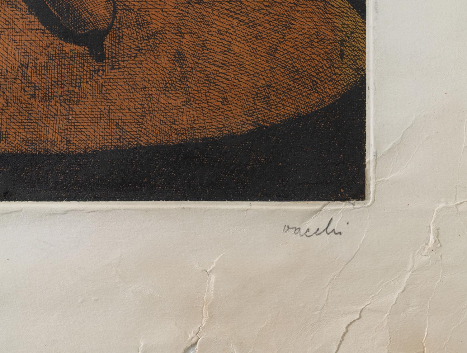 Incisione su carta, firmata a matita in basso a destra, reca numero di tiratura 27/60 in basso a sinistra, lastra H cm 49x79 - foglio H cm 70x86,5 (difetti, strappi)