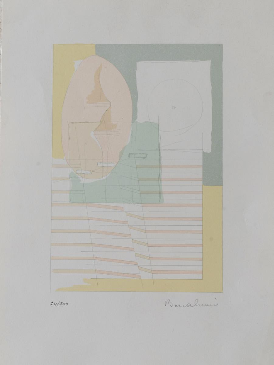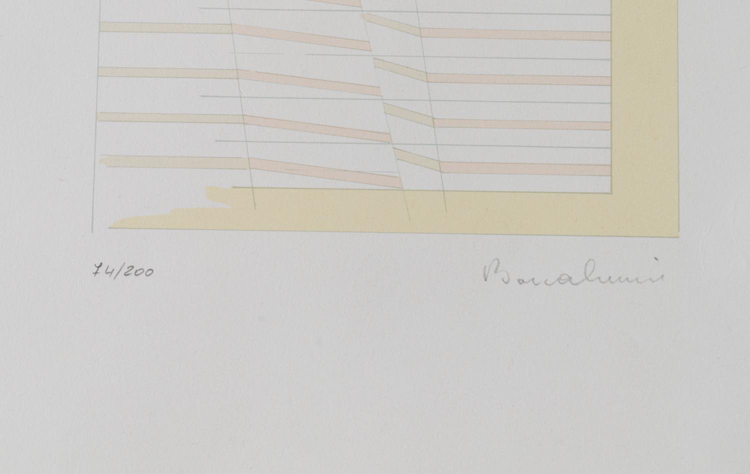 Litografia a colori su carta, firmata a matita in basso a destra, reca numero di tiratura 74/200 in basso a sinistra, lastra H cm 19x13 - foglio H cm 28,5x21