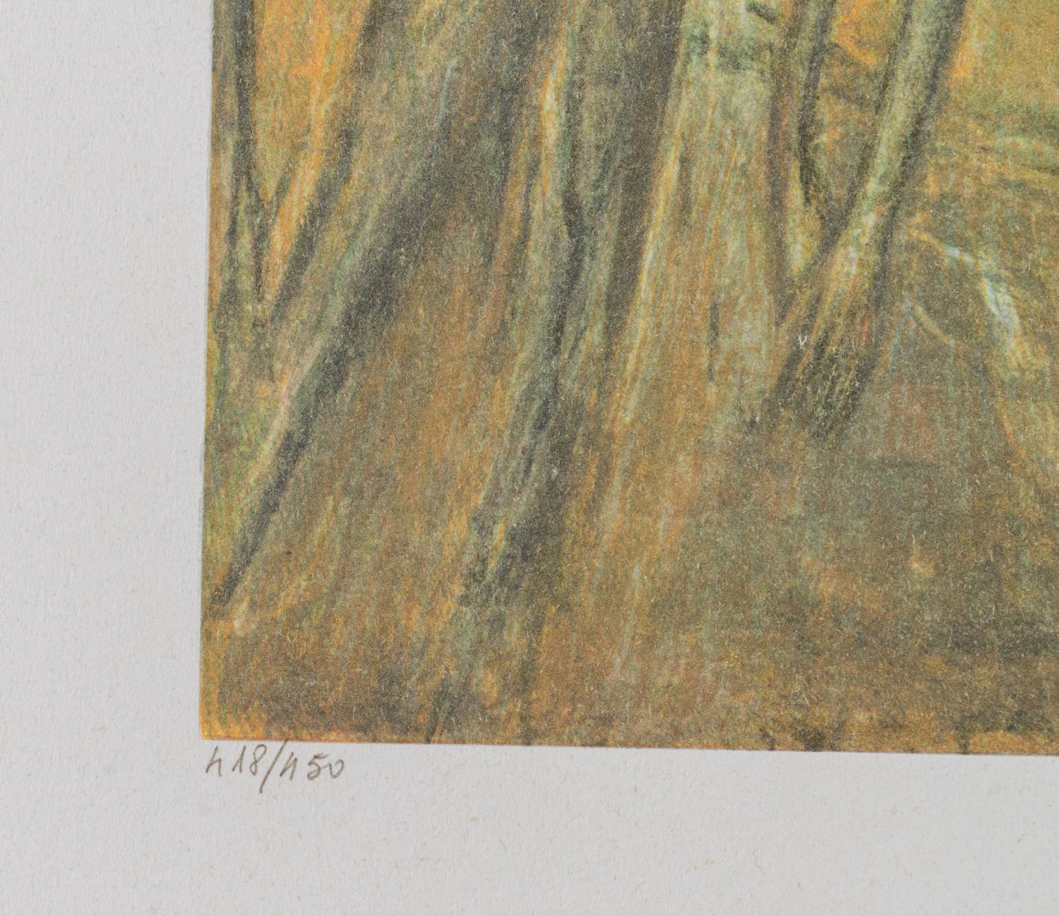 Litografia a colori su carta, firmata e datata a matita in basso a destra, reca numero di tiratura 418/450 in basso a sinistra, lastra H cm 39.5x25.5 - con cornice H cm 51x36