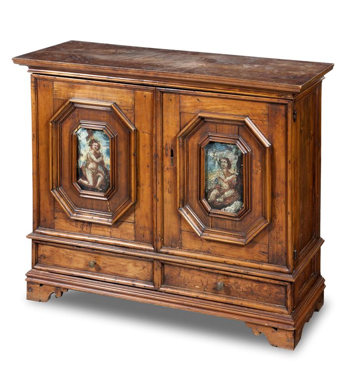 Lotto 638 | PICCOLA CREDENZA H. cm 83x103x38 In noce, costruita con legni antichi, a due...
