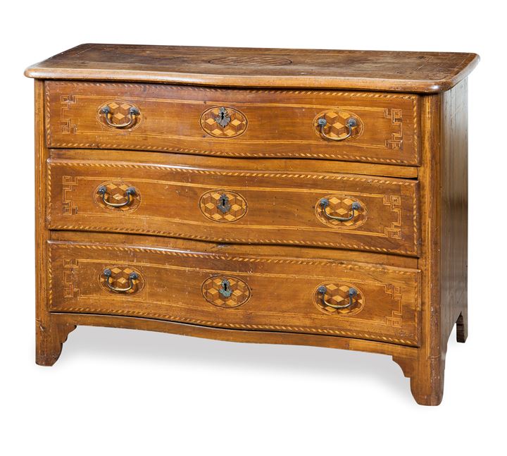 Lotto 648 | CASSETTONE H. cm 90x127x53 Piemonte XVIII sec., in noce, con intarsi in...
