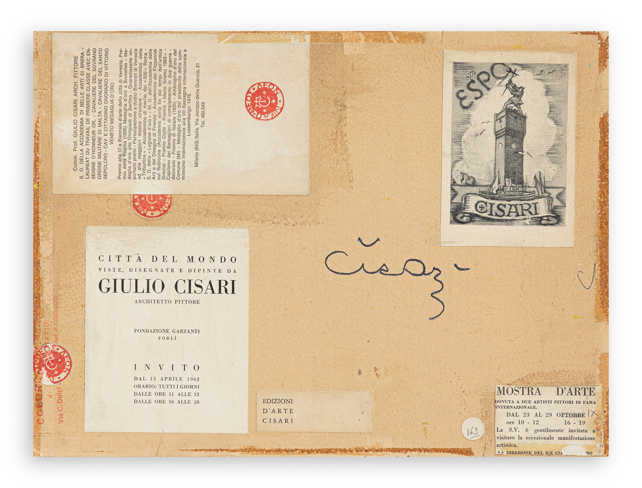 Cartigli dell'Artista e di ulteriori esposizioni al retro