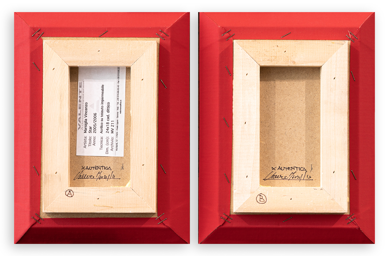 Etichetta della Galleria Valente Arte Contemporanea (SV) al retro del primo elemento