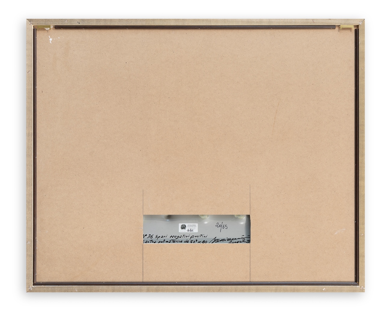 Firma, titolo, tecnica, misure e numerazione (Esemplare 20/65) al retro