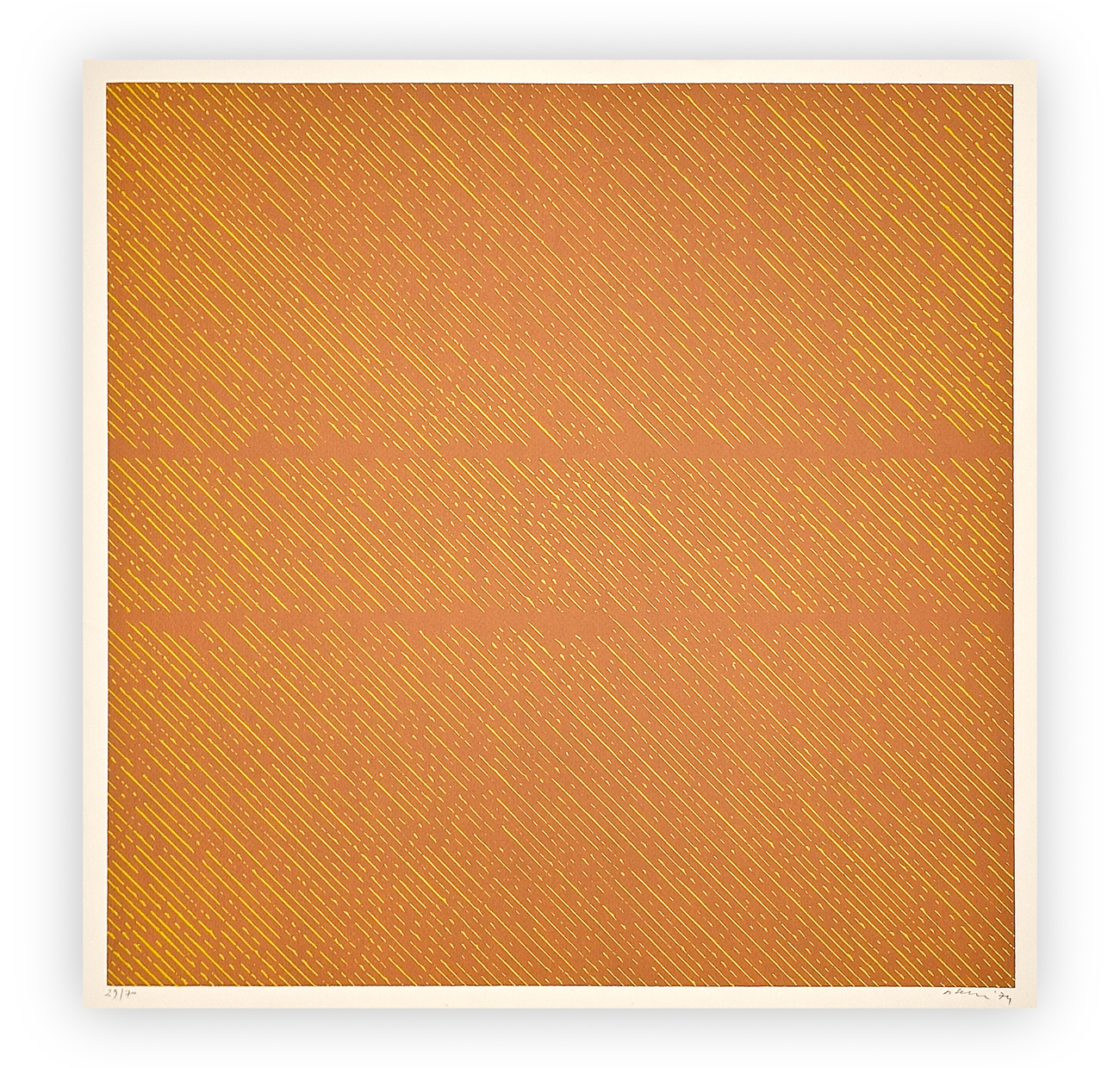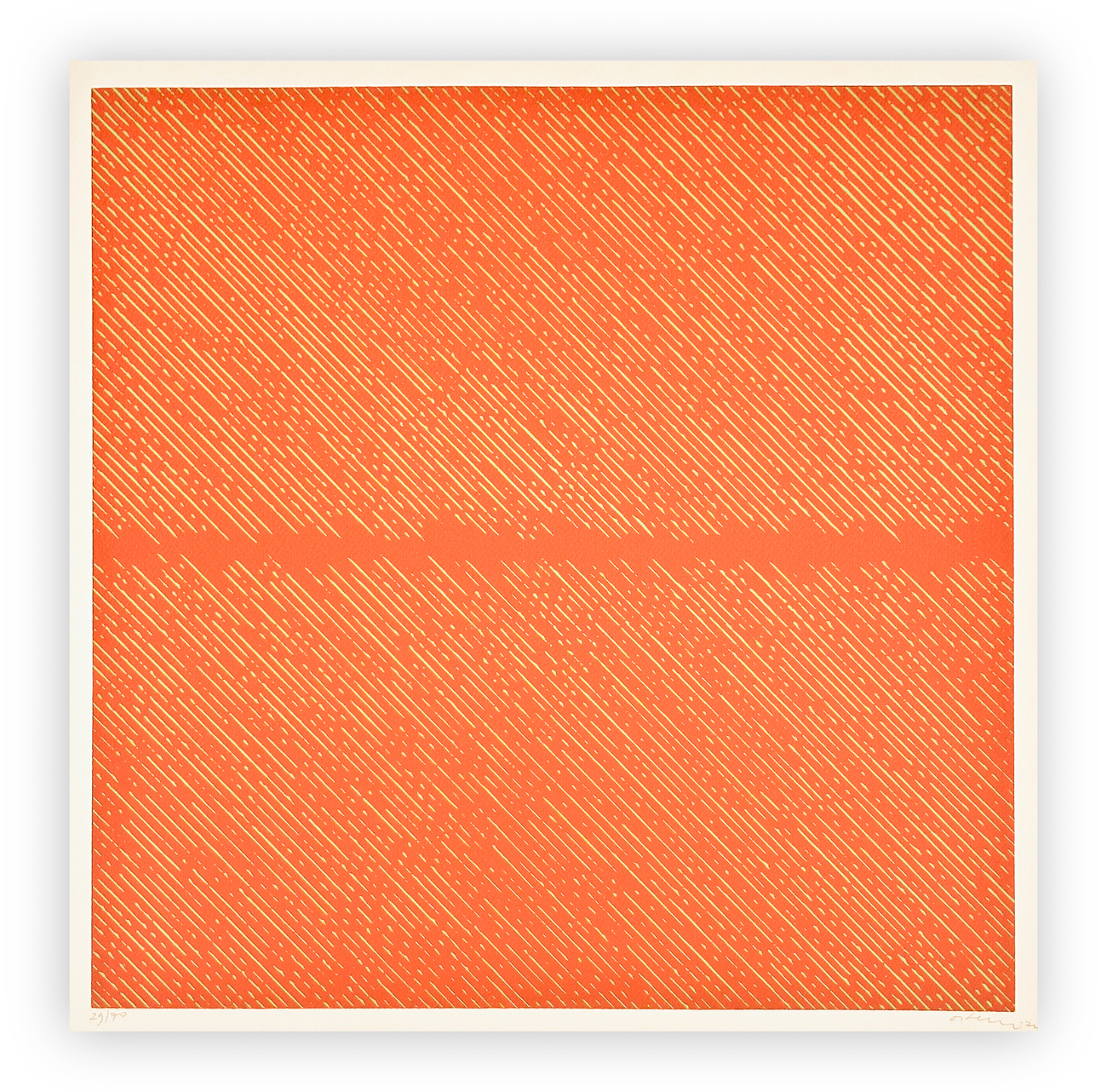 Cartella contenente una poesia di Roberto Sanesi e 4 serigrafie di Gottardo Ortelli, ciascuna recante firma, datazione, numerazione (Esemplare 29/70) a matita al fronte