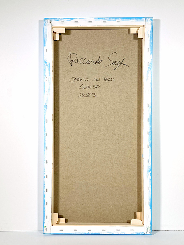 RICCARDO SELMA, 2023, smalti su tela, 40x80 cm. Autentica dell'artista su fotografia