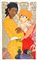 GOFFREDO CIVITARESE, "Figure con natura morta", Serigrafia polimaterica su stoffa damascata su tavola, dim 60x100 cm, esemplare 39 di 150