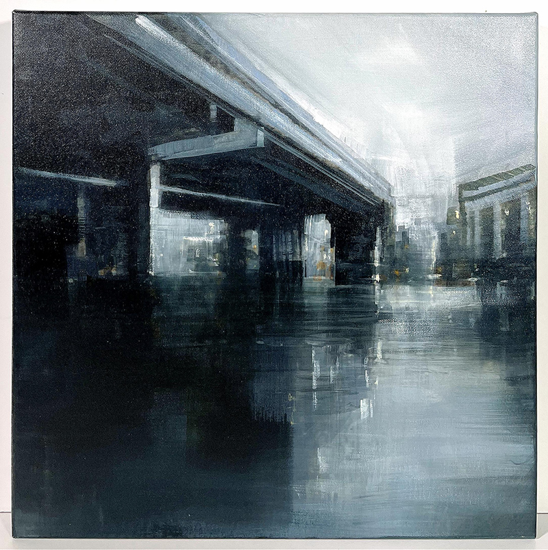AGOSTINO CANCOGNI, "Periferie", olio su tela, 50x50 cm. Autentica dell'artista su fotografia