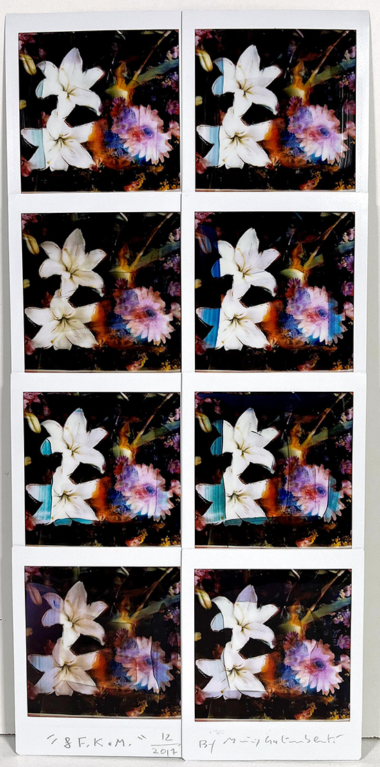 MAURIZIO GALIMBERTI, "8F.K.M.", 2017, Mosaico 8 Fujifilm instax - edizione originale, cm 15.5x29. Certificato di autenticità dell'artista su fotografia. Opera registrata presso "Archivio Nordest" al numero 11247. Pubblicata sul catalogo: "Maurizio Galimberti - Flowers 2" a pag. 79 autentica/archivio su fotografia