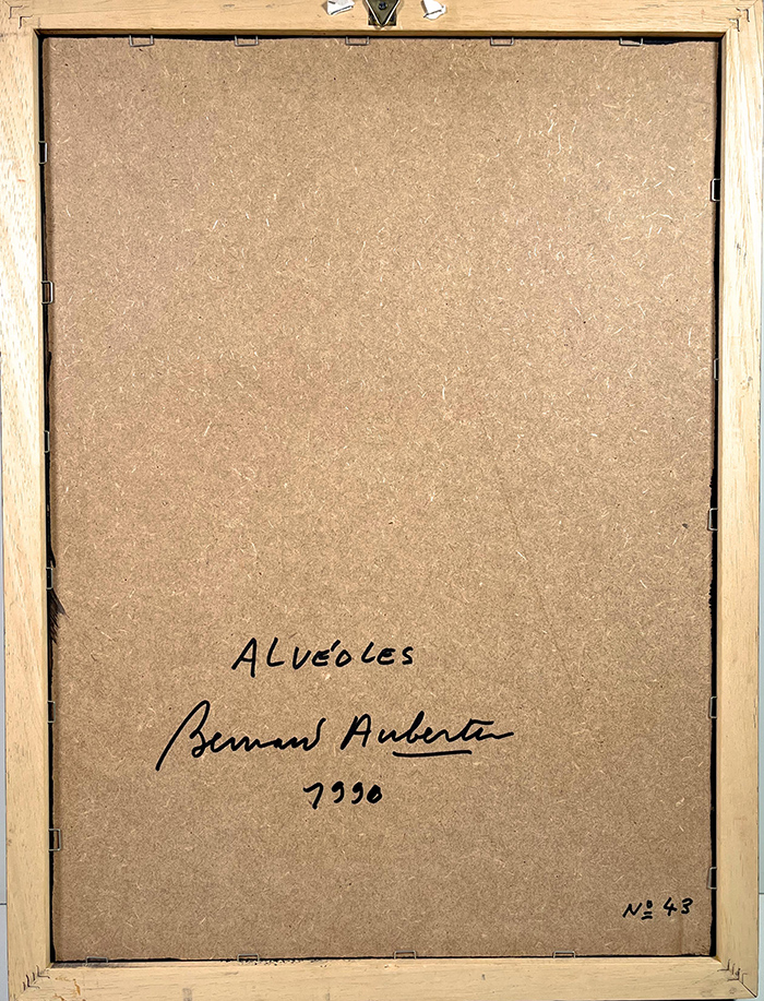 BERNARD AUBERTIN, "Alveolés", 1990, Cartone dipinto su tavola, cm 40x45. Titolo firma e anno al retro. Opera registrata presso l'Archivio Opere Bernard Aubertin. Certificato di autenticità e archiviazione su foglio A4 con timbro a secco e firma dell'archivio