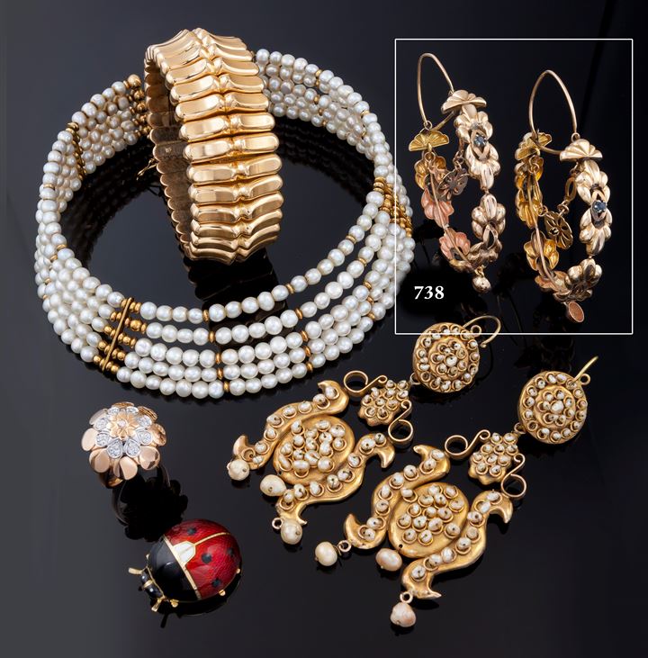 Lotto 738 | GRANDE COPPIA DI ORECCHINI Peso gr 16,0 In oro 12 Kt, a forma di cerchio...