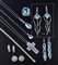 In oro bianco con due topazi taglio carrè e sei frande ondulate pendenti in diamanti taglio brillante per complessivi ct 0,75 ca , piccoli zaffiri taglio rotondo