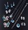 In oro bianco, con goccia di acquamarina e diamantini a contorno per complessivi ct 0,60 ca