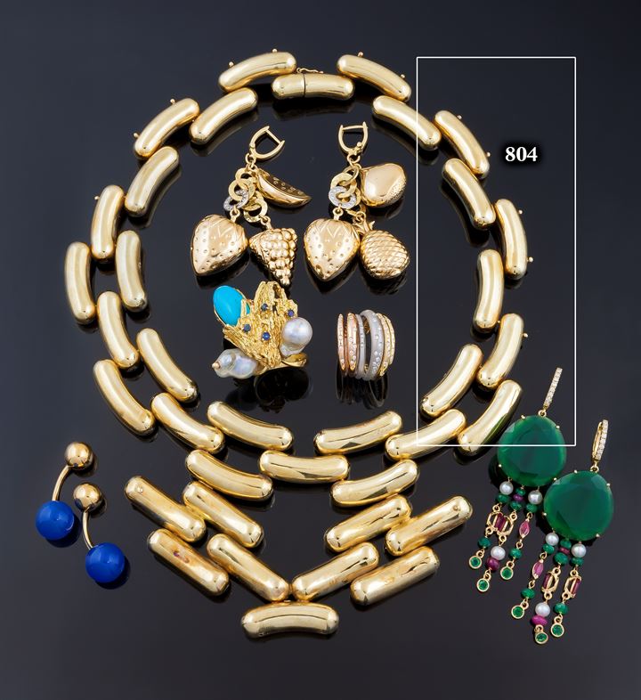 GIROCOLLO Peso gr 109,3 In oro giallo, composto da segmenti rigidi, bombati e...