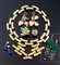 Pendenti, in oro giallo, struttura a lobo a cerchio con diamanti taglio brillante per complessivi ct 0,20 ca, agate sfaccettate, perline, piccoli rubini e smeraldi di vari tagli