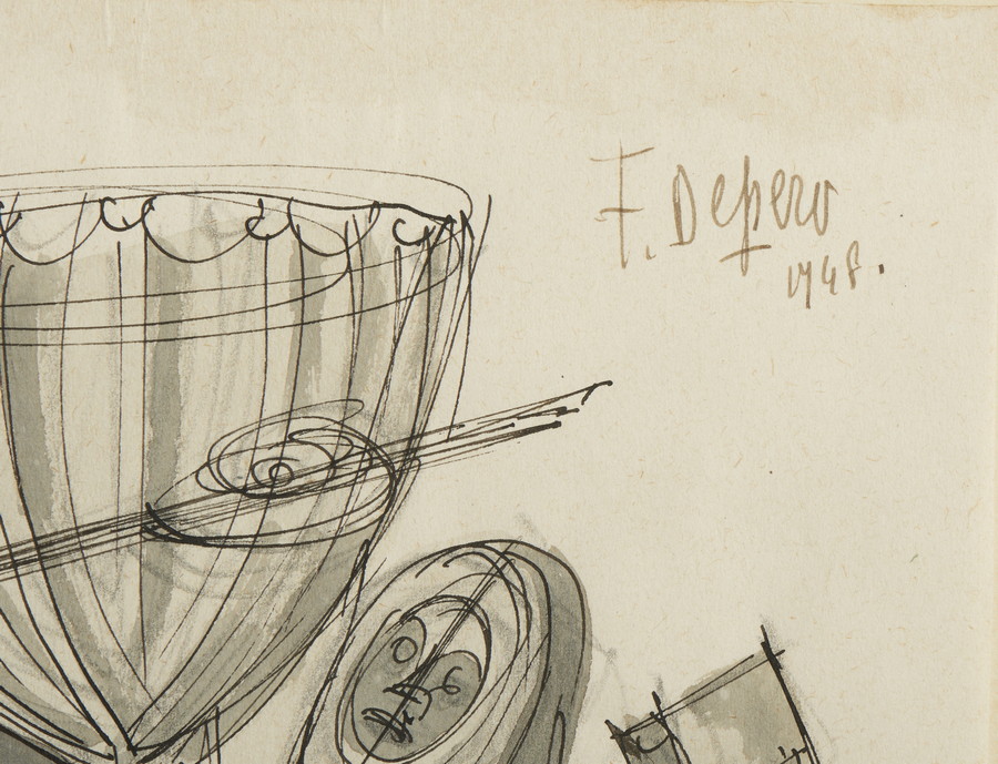 DEPERO FORTUNATO (1892 - 1960) LA COPPA DELLA VITA E DELLA MORTE. 1948. matita, china e china diluita su carta. Cm 16,00 x 21,50. firma e data