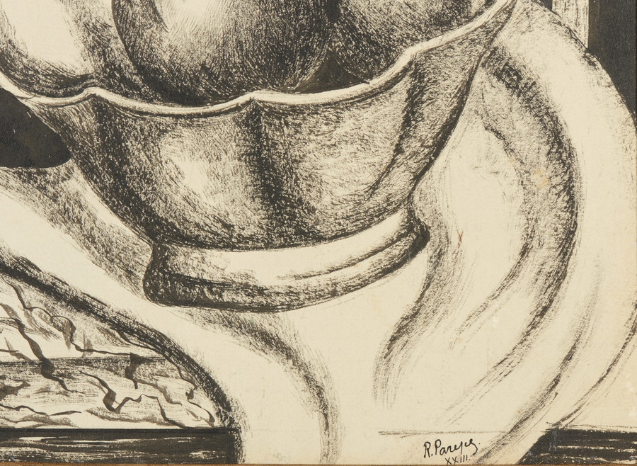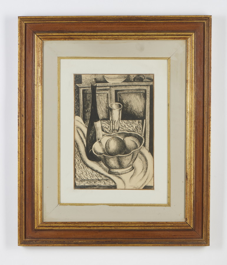 PARESCE RENATO (1886 - 1937) FRUTTA E BOTTIGLIA. 1923. tecnica mista su carta. Cm 22,00 x 32,00. firma e data