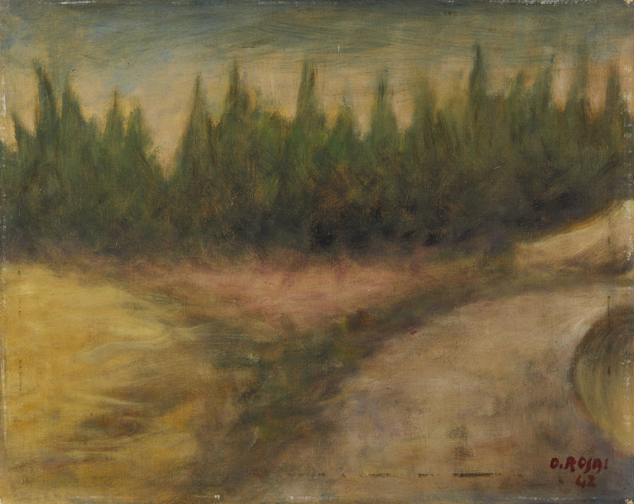ROSAI OTTONE (1895 - 1957) PAESAGGIO. 1942. Olio su tela cartonata. Cm 50,00 x 40,00. firma e data