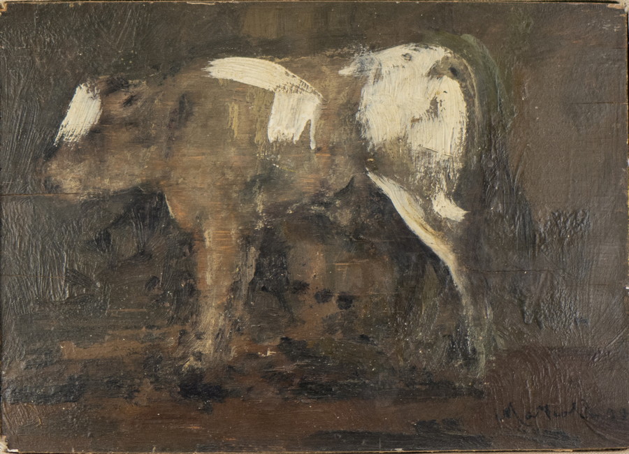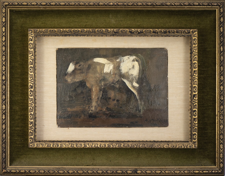 MATTIOLI CARLO (1911 - 1994) SENZA TITOLO (LA MUCCA) (1935 circa). Olio su tavoletta. Cm 25,00 x 17,00. firma e data
