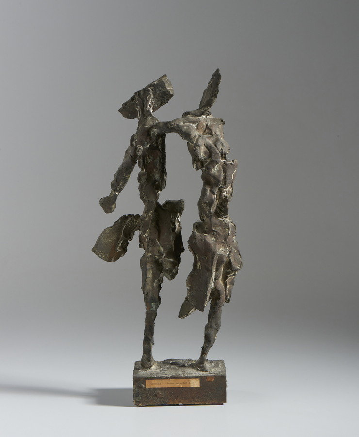 CHERCHI SANDRO (1911 - 1938) INCONTRO METAFISICO. Bronzo. Cm 24,00 x 51,50 x 20,50. dimensioni senza base: 45x24x18,5cm
