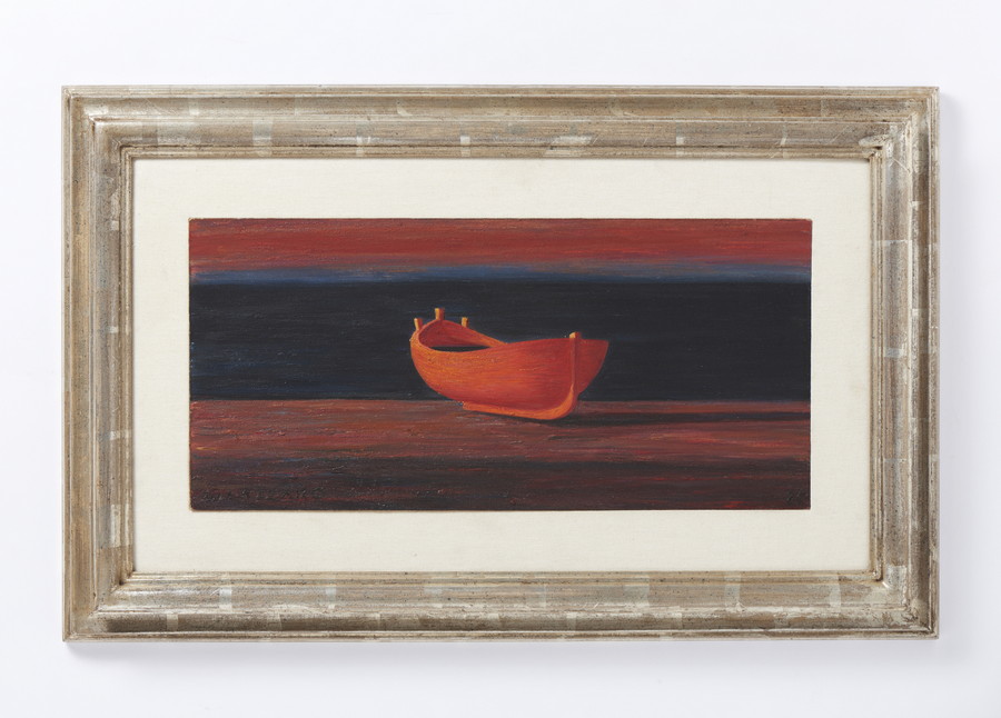 LAZZARO WALTER (1914 - 1989) BARCA ROSSA. 1984. olio su faesite. Cm 50,00 x 23,50. firma e data