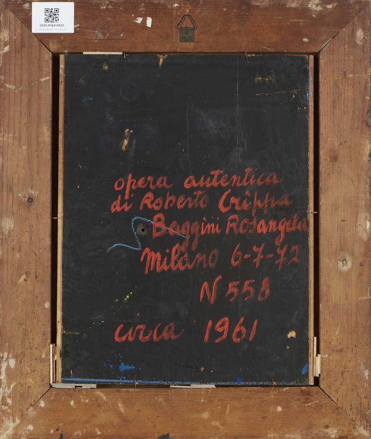 L'opera è accompagnata da certificato di archiviazione di Roberto Crippa Jr. . Cornice presente
