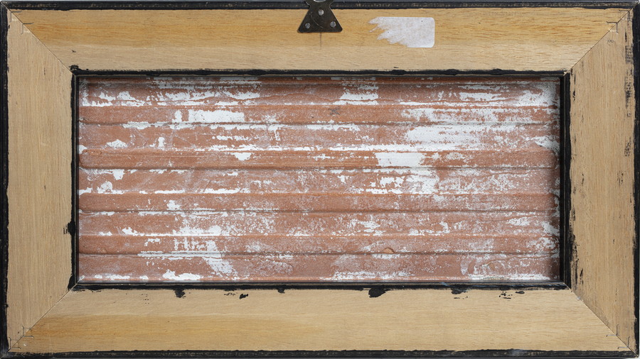 MELOTTI FAUSTO (1901 - 1986) PIASTRA PER MANIFATTURA (1965 ca). Terracotta smaltata in policromia sotto vetrina.. Cm 17,50 x 34,50. L'opera è registrata presso la Fondazione Fausto Melotti, Milano, con il m. OPR 020.