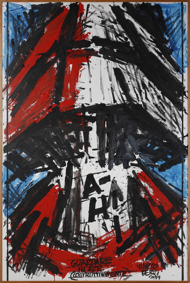 BERTI VINICIO (1921 - 1991) GUARDARE IN ALTO (COSTRUTTIVAMENTE). 1991. Tempera sintetica su tela. Cm 200,00 x 300,00. titolo, firma e data