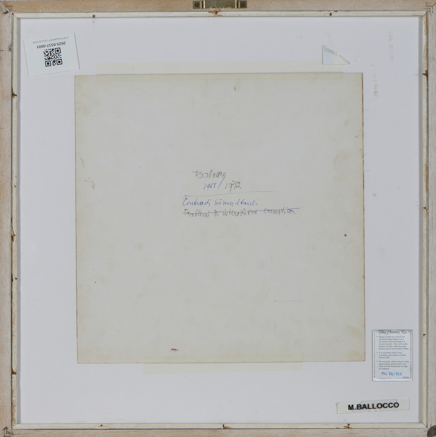 L'opera è accompagnata da certificato di archiviazione dell'Associazione archivio Mario Balocco, Milano a cura di Paolo Bolpagni