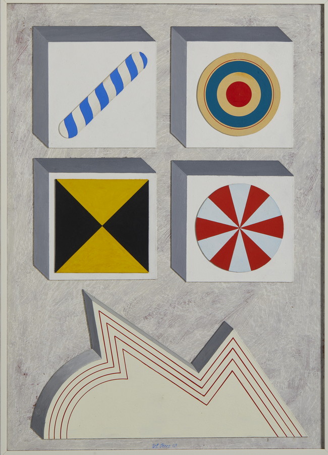 DEL PEZZO LUCIO (1933 - 2020) ELEMENTI IN PROSPETTIVA . 1968. Polimaterico su faesite. Cm 33,00 x 46,00. firma e data