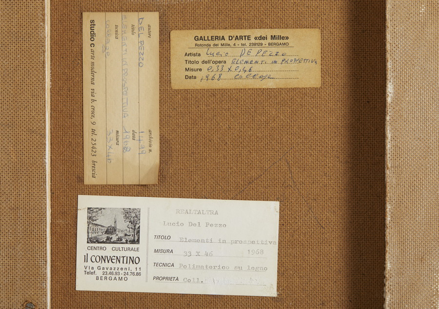 sul retro: firma, data, titolo, etichetta Il Conventino, Bergamo; Studio C, Brescia e Galleria d'arte dei Mille, Bergamo
