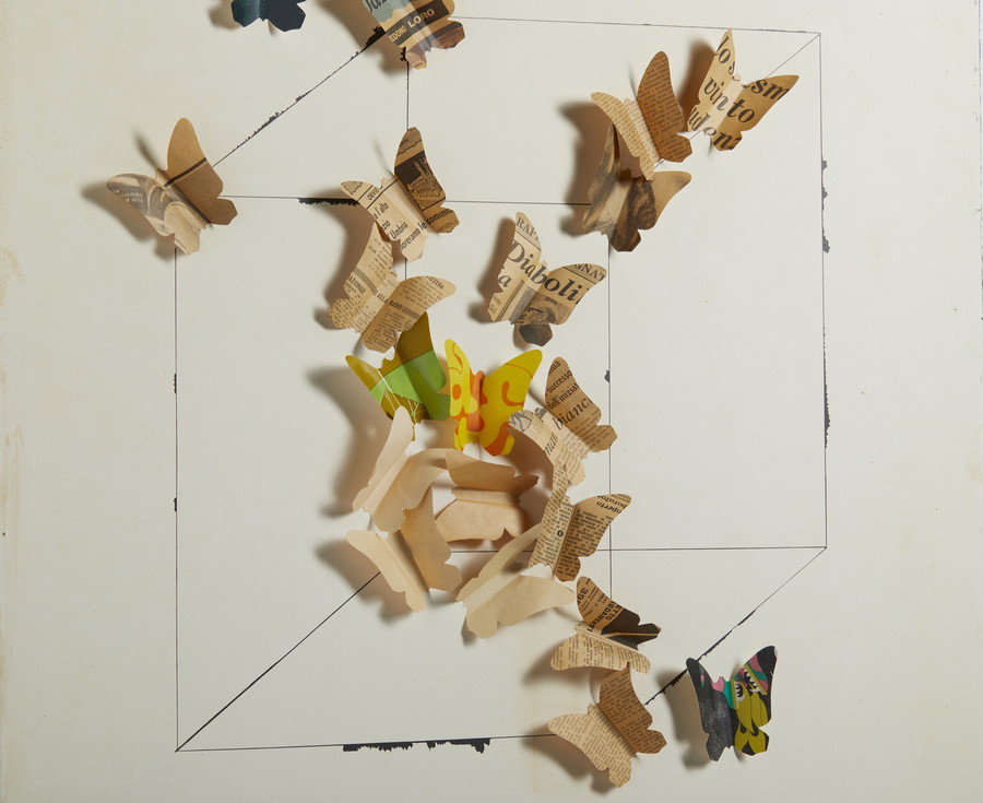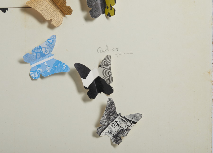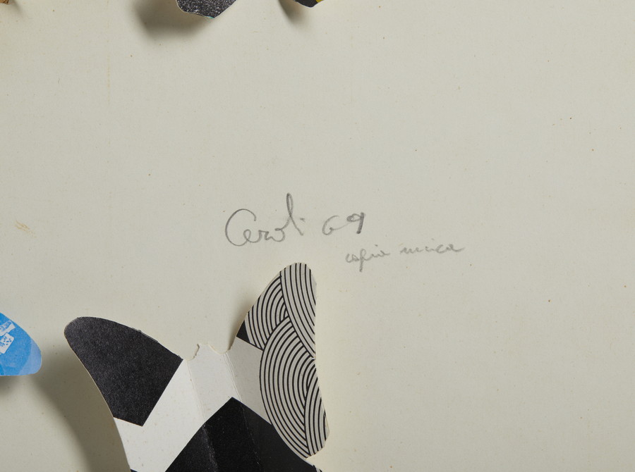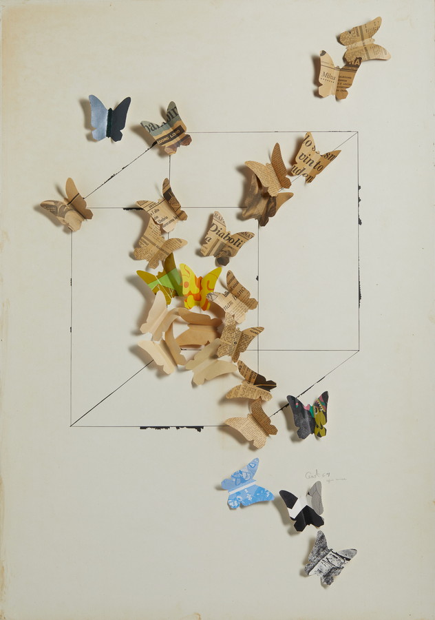 CEROLI MARIO (n. 1938) FARFALLE. 1969. collage su carta. Cm 70,00 x 100,00. firma e data